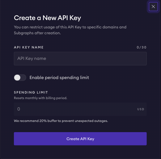 This guide shows you how to create, manage, and secure API keys for your Subgraphs.